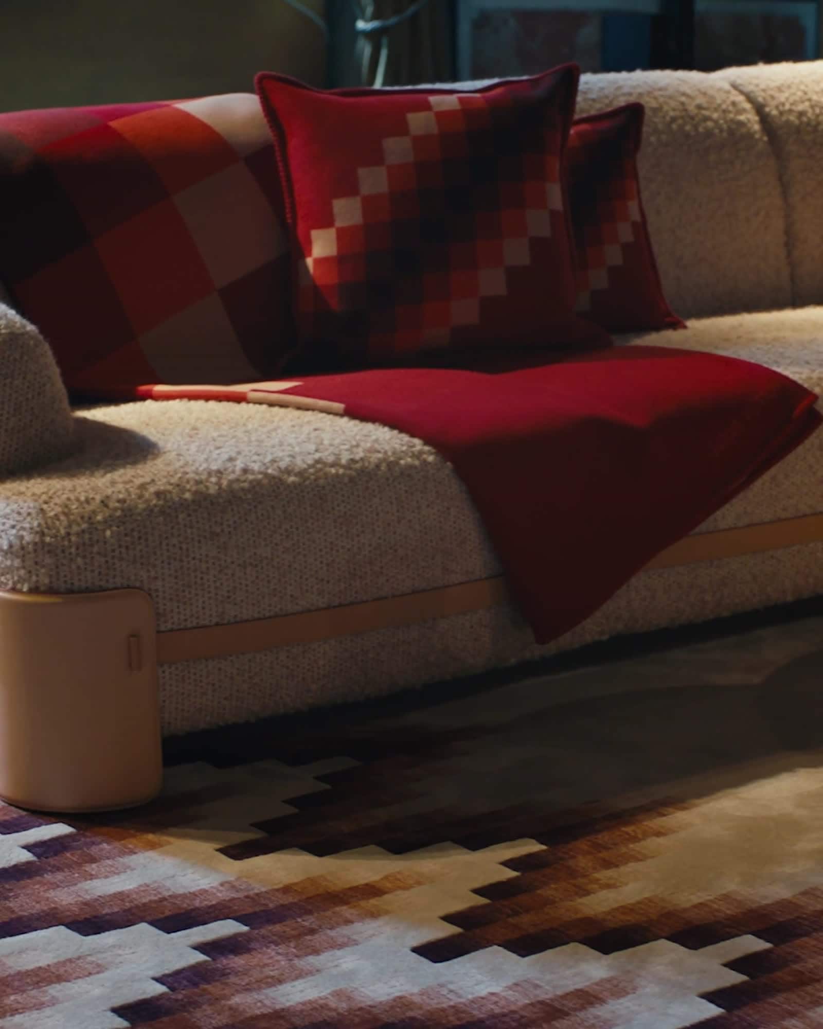 Bold graphic expressions in luxurious wool, cashmere, and cotton, where artisanal techniques create a dialogue between geometric and natural inspirations.