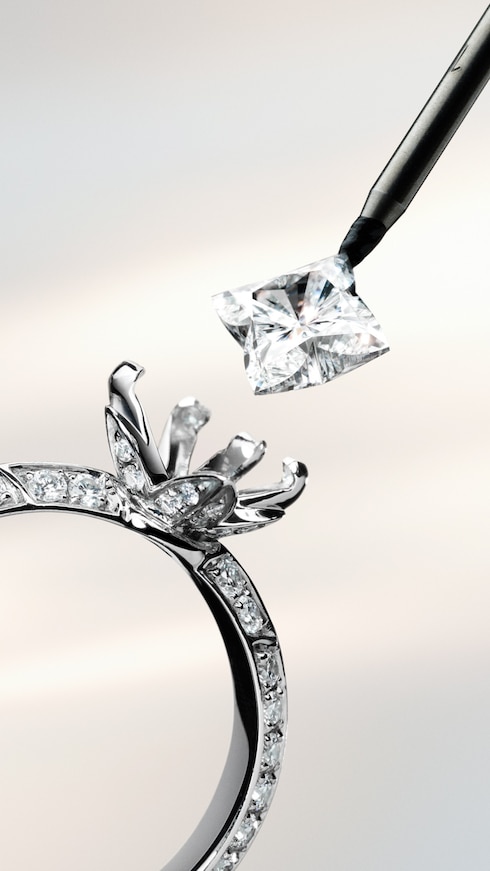 Each center stone is mounted by hand by artisans in France or Italy who carefully bring each LV Diamonds piece to life with refined, highly detailed settings featuring delicate V-shaped prongs or flower-shaped bezels.