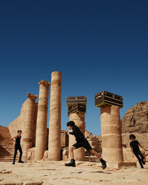 Louis Vuitton embarks on a far-reaching journey, exploring dreamlike settings around the globe in an evocative ode to the inner child. Traversing wild American landscapes, photographer Viviane Sassen captures a young boy and his band of friends as they set out an adventure, with the iconic Louis Vuitton trunk as their imaginary vessel. From the dunes of White Sands, New Mexico, to the woods outside of Austin, Texas, perspectives are played with, shadows enlivened, and nature harnessed.