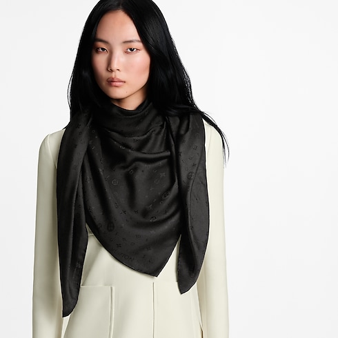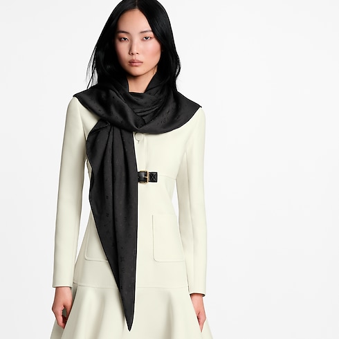 With its timeless style and superb craftsmanship, the All My LV shawl emanates understated elegance. Jacquard-woven in a plush wool-silk blend, its pattern combines the iconic Monogram motifs with the letters of the House’s name for an original signature. This versatile shawl can be worn with an evening dress, as a scarf, or even as a knotted top.