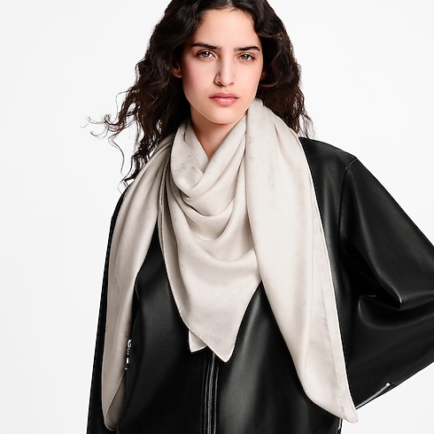 With its timeless style and superb craftsmanship, the All My LV shawl emanates understated elegance. Jacquard-woven in a plush wool-silk blend, its pattern combines the iconic Monogram motifs with the letters of the House’s name for an original signature. This versatile shawl can be worn with an evening dress, as a scarf, or even as a knotted top.
