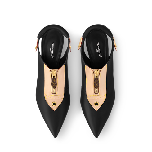 The Allure slingback pump in smooth calf leather is one of the statement styles of the Prefall 2024 collection. Its refined bicolor palette is complemented by Louis Vuitton signature details, including a Monogram-canvas zip pull and gold-tone studs on its padded back strap. A straight stiletto heel finishes this sophisticated design.