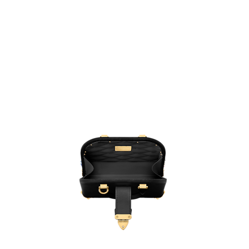 Inspired by traditional chintz – an Indian printed cotton canvas often used for upholstery – this exquisite Alma Trunk 20 is crafted from cowhide leather, hand-embroidered with glass, acrylic, and crystal beads. Gold-tone hardware, including S-lock and rivets, enhances its artisanal feel. It features include two top handles and a removable, adjustable leather strap.