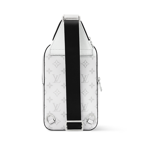 The Avenue Slingbag PM makes a bold statement in tone-on-tone Monogram coated canvas and Taigarama cowhide leather, finished with a black strap. This versatile piece features a spacious main compartment, a zipped front pocket, and a small triangular pocket where the strap meets the bag. An adjustable strap allows for effortless wear on either shoulder.