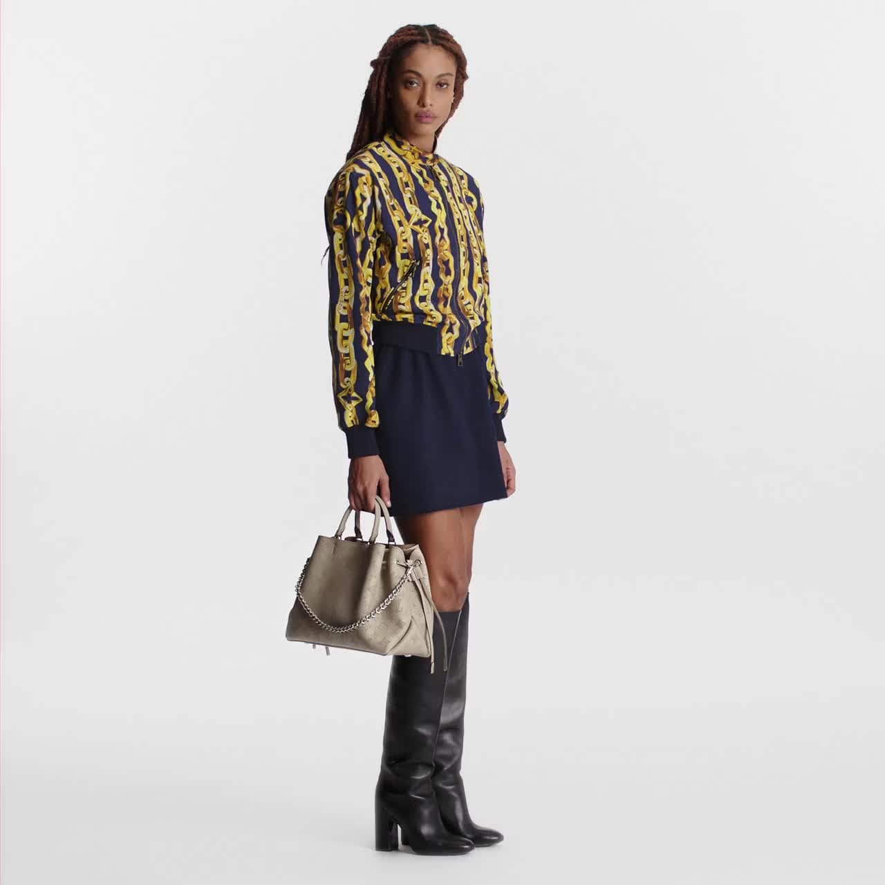The Bella Tote is made from supple Mahina calf leather in a subtle and elegant Galet. The leather is delicately pleated and draped, and adorned with a jewel-like chain. The Bella Tote blends the design of the classic bucket bag with the carryall tote, making this stylish bag perfect for everyday use.
