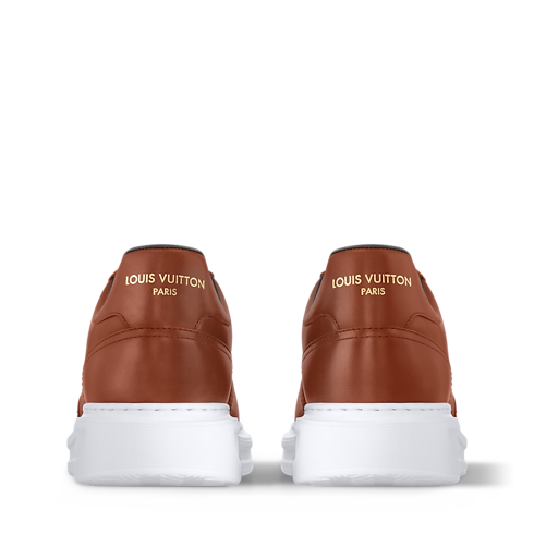 The Beverly Hills sneaker comes in waxed calf leather with embossed, gold-toned details, including Louis Vuitton in script lettering on the side. The smart upper is complemented by a chunky yet lightweight outsole in white rubber, which is debossed with the House signature. A padded insole and technical lining make this model extremely comfortable to wear.