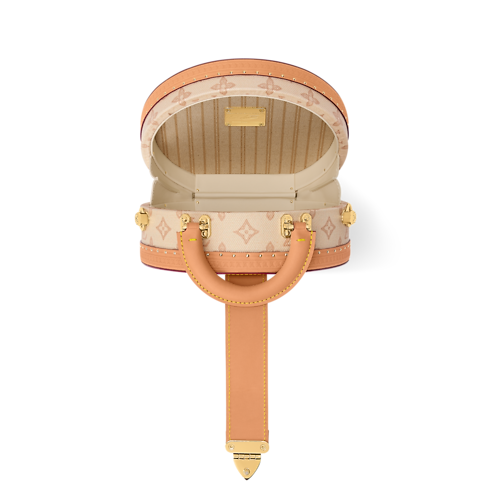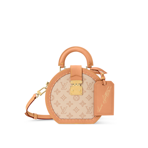 Monogram Origine coated canvas, the House’s archival Monogram reinterpretation, gives the Boîte Chapeau PM understated charm. Inspired by late 19th-century hat boxes, its distinctive shape is emphasized by a linen color canvas mix with natural cowhide-leather trim and a top handle. Its light weight and adjustable, detachable strap make it a perfect everyday companion.