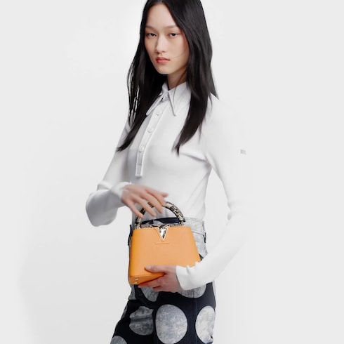 The vibrant golden-yellow Taurillon leather blends beautifully with the natural python leather on the flap and handle of this eye-catching Capucines Mini handbag. Carried by hand, with its top handle, or worn cross-body, thanks its fashionably wide strap, this gorgeous bag is perfect for day or evening use.