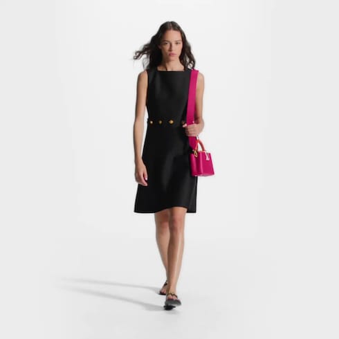 This Capucines Mini handbag is fashioned from Taurillon leather in bold fuchsia with bright-orange ostrich leather on the flap and top handle. It comes with a wide removable strap that adjusts for comfortable shoulder carry. The flap can be tucked inside to display the LV signature or worn outside to reveal a Monogram Flower.