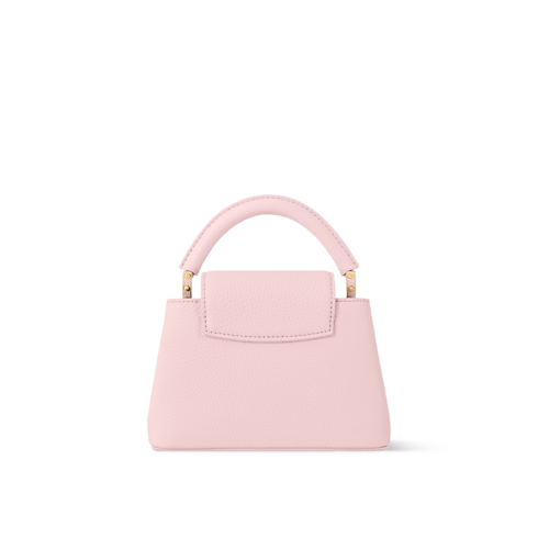 The Why Knot collection reinvents the Capucines Mini in a Sweet Pink colorway, adding a feminine touch to any accessories collection. It is crafted from refined Taurillon leather adorned with a bi-galvanized decorative chain that is inspired by jewelry – the elegant embellishment features signature Monogram hanging charms with exquisite pearl details. This edition also comes with a longer strap for versatile styling.