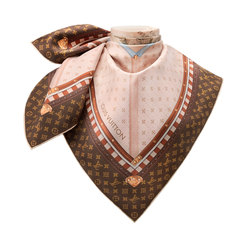 The creative design of the Chez Elle square was inspired by the labels that once adorned the classic Louis Vuitton trunks. Printed on sumptuous silk, it transforms these symbols of historic journeys into a bold, contemporary graphic statement. More than an accessory, this versatile square is a collector’s item, infused with timeless sophistication and the spirit of travel.