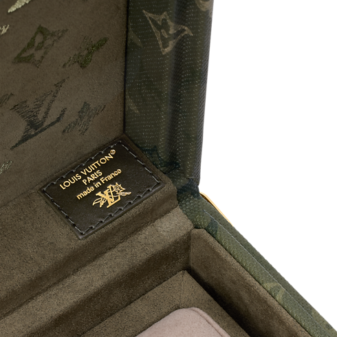 The Coffret 8 Montres is crafted from Monogram Surplus coated canvas, a fresh take on the Monogram motif with a camouflage twist. Evoking the British countryside and artisanal craftsmanship, Pharrell Williams brings a palette of greens to life. Inside, a removable tray with watch cushions keeps precious timepieces safe and travel-ready.