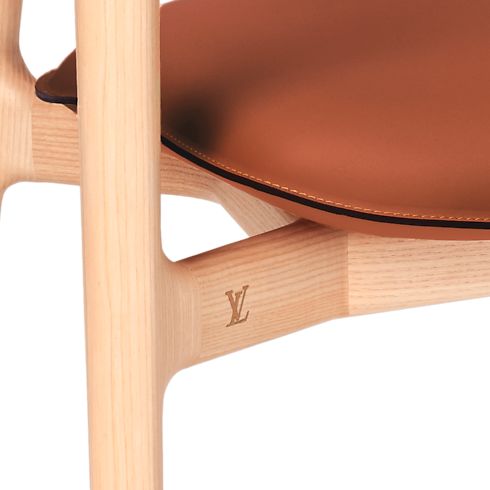 The sculptural design of the Collar chair draws on the House’s historical expertise in leather and luggage-making. Its subtly curved wooden leg structure creates an elegant contrast with the cowhide seat and back, recalling the combination of wood and canvas in classic Louis Vuitton trunks. High-precision details like edge-dyeing, fine stitching and a marquetry LV Initials signature lend an unmistakable aura of refinement to this superbly crafted, comfortable chair.