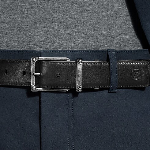 The Corner Pin Trunk 35mm Reversible belt is a simple silhouette inspired by the Louis Vuitton heritage of excellence in craftsmanship. The smooth leather on both sides pairs with a square buckle detailed with metal embellishments meant to mimic the rivets of the House's signature trunks. The versatile style suits casual to more formal wear.
