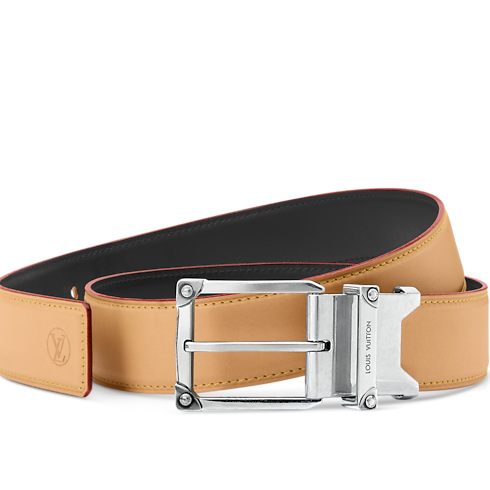 The Corner Pin Trunk 35mm Reversible belt is a simple silhouette inspired by the Louis Vuitton heritage of excellence in craftsmanship. The smooth leather on both sides pairs with a square buckle detailed with metal embellishments meant to mimic the rivets of the House's signature trunks. The versatile style suits casual to more formal wear.