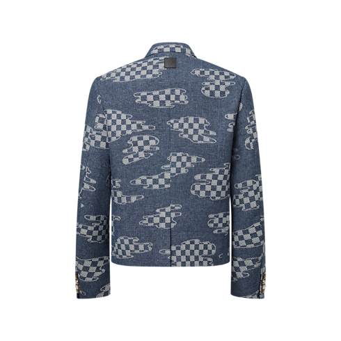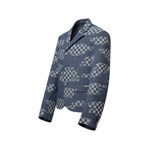 This single-breasted indigo jacket with a preppy cropped silhouette is from the Fall-Winter 2025 show’s collaboration between Pharrell and Nigo. It is tailored from a graphic Damier Clouds jacquard inspired by mending techniques from Nigo’s native Japan, and adorned with dandy pearl-like buttons. Designed to be mixed and matched, this piece brings a fashion-forward accent to everyday looks.