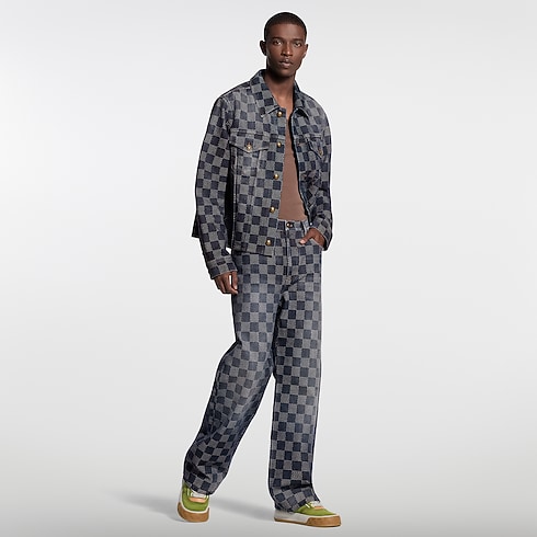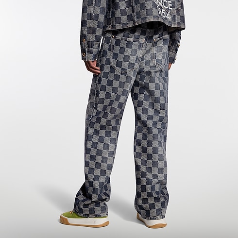 These casual denim skate pants feature a graphic allover Damier motif woven directly into the fabric. The certified cotton is washed and brushed for a soft vintage finish, while a Mini Damier nubuck jacqueron signs the rear waist. This piece has a matching shirt for a signature look.