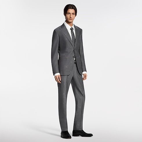 Elegantly tailored in a timeless dark gray, this single-breasted Pont Neuf jacket is ideal for formal business occasions. The fine wool features a sophisticated tone-on-tone Mini Damier Seeds jacquard motif incorporating Monogram Flowers with a softly dappled effect. A peak lapel and piped pockets enhance the streamlined silhouette, which makes a chic suit paired with matching pants.