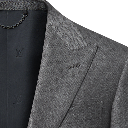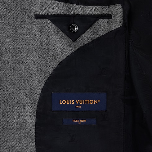 Elegantly tailored in a timeless dark gray, this single-breasted Pont Neuf jacket is ideal for formal business occasions. The fine wool features a sophisticated tone-on-tone Mini Damier Seeds jacquard motif incorporating Monogram Flowers with a softly dappled effect. A peak lapel and piped pockets enhance the streamlined silhouette, which makes a chic suit paired with matching pants.