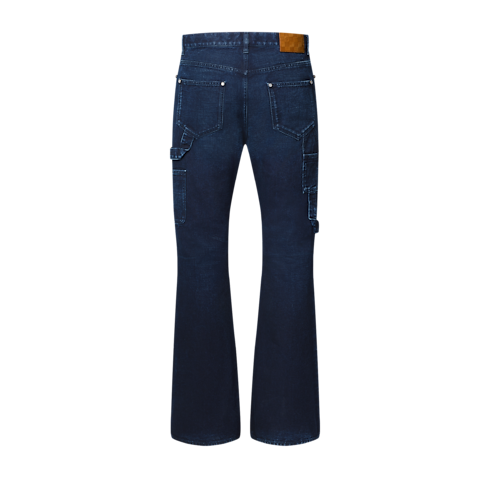 These flattering high-waisted carpenter pants with a boot-cut silhouette are constructed from exclusive Japanese denim canvas in washed dark indigo tones. Classic carpenter details are given a sophisticated twist with a pearl-effect button closure and rivets, bringing a distinguished touch to everyday looks, while a Damier jacqueron signs the back. A matching workwear jacket makes a trendy set.