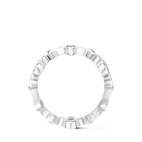 Two Monogram Flower motifs alternate to form this exquisite ring from the Dentelle collection. Crafted from hand-polished 18-kt white gold and hand-set diamonds, this is a modern, feminine jewel that can be worn solo or paired with pieces from the other Blossom ranges, which all feature the iconic Flower designed by Georges-Louis Vuitton in 1896.