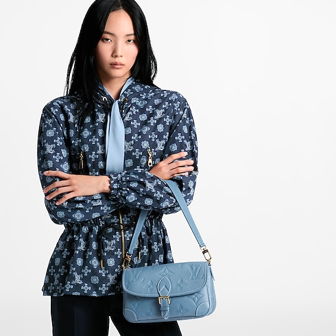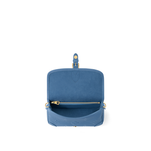 This sleek Diane handbag is updated for the season in a Blue Jean palette, which complements day and evening looks. It is crafted from signature Monogram Empreinte leather with a contrasting textile strap that can be removed if desired. The elegant design is adorned with gold-toned hardware and opens to reveal a zipped pocket to keep smaller items secure.