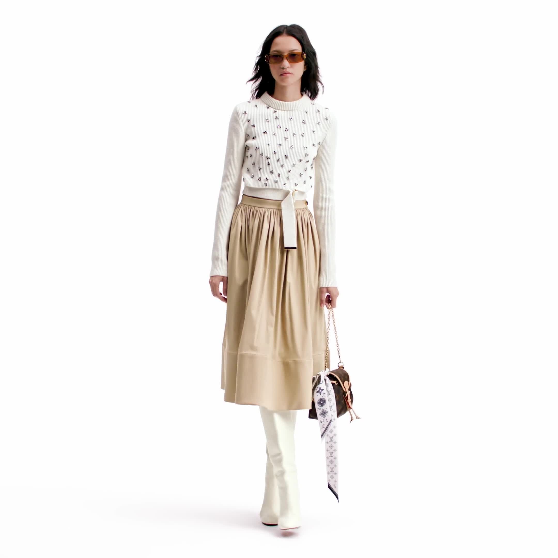 The Donna high boot is reimagined this season in supple, grained calf leather. Designed by Louis Vuitton Women's Artistic Director Nicolas Ghesquière, this model is distinguished by its slim, tubular form, inspired by the Seventies. Its sleek lines are accented by visible stitching, while its high block heel merges with the upper for a leg-lengthening effect.