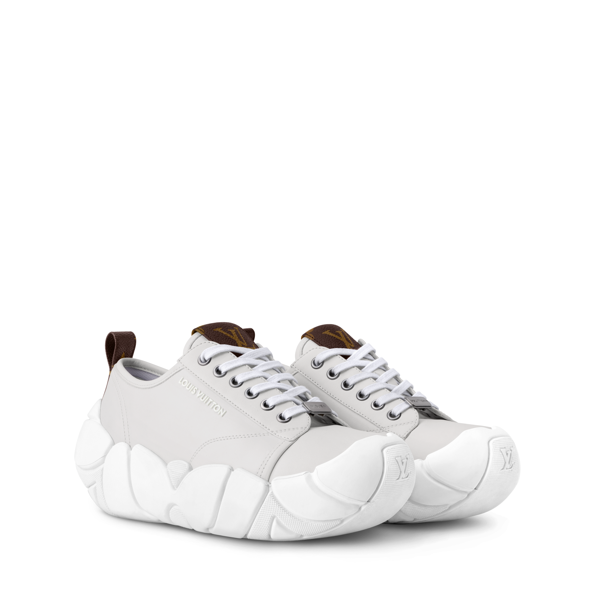 Crafted from the House’s signature double-face wool-silk blend, this coat is cut in a modern, boxy silhouette with an elegant standing collar. An asymmetrical front flap is held open with a sleek carabiner clip to reveal a glimpse of the graphic Monogram jacquard on the inside, while tone-on-tone leather accents add a refined finishing touch.