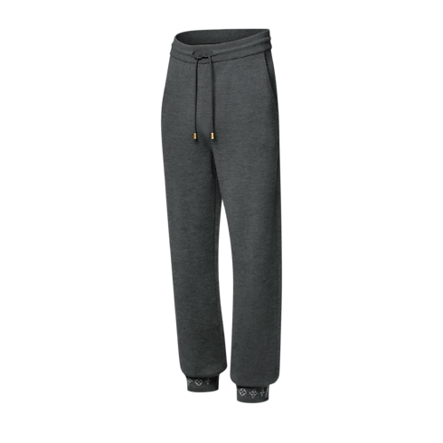 Combining comfort and elegance, these dark grey organic wool pants are crafted in a double-face knit with a soft cotton interior. Their minimalist silhouette, which is distinguished with jacquard Monogram signatures on the cuffs, makes a smart travel set when paired with a matching blouson.