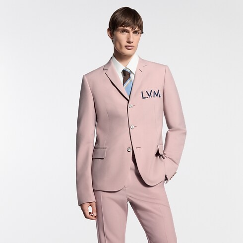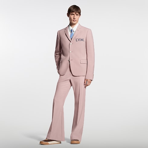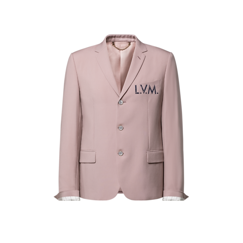 This single-breasted jacket comes in a subtle dusty pink from the India-inspired Spring-Summer 2026 show. Tailored in fine, responsibly-sourced wool, it features contrasting L.V.M. embroidery lending a modern, graphic accent to the breast pocket, while striped lining adds a sartorial detail to the sleeves. Matching pants make an elegant suit, perfect for sunny spring days.
