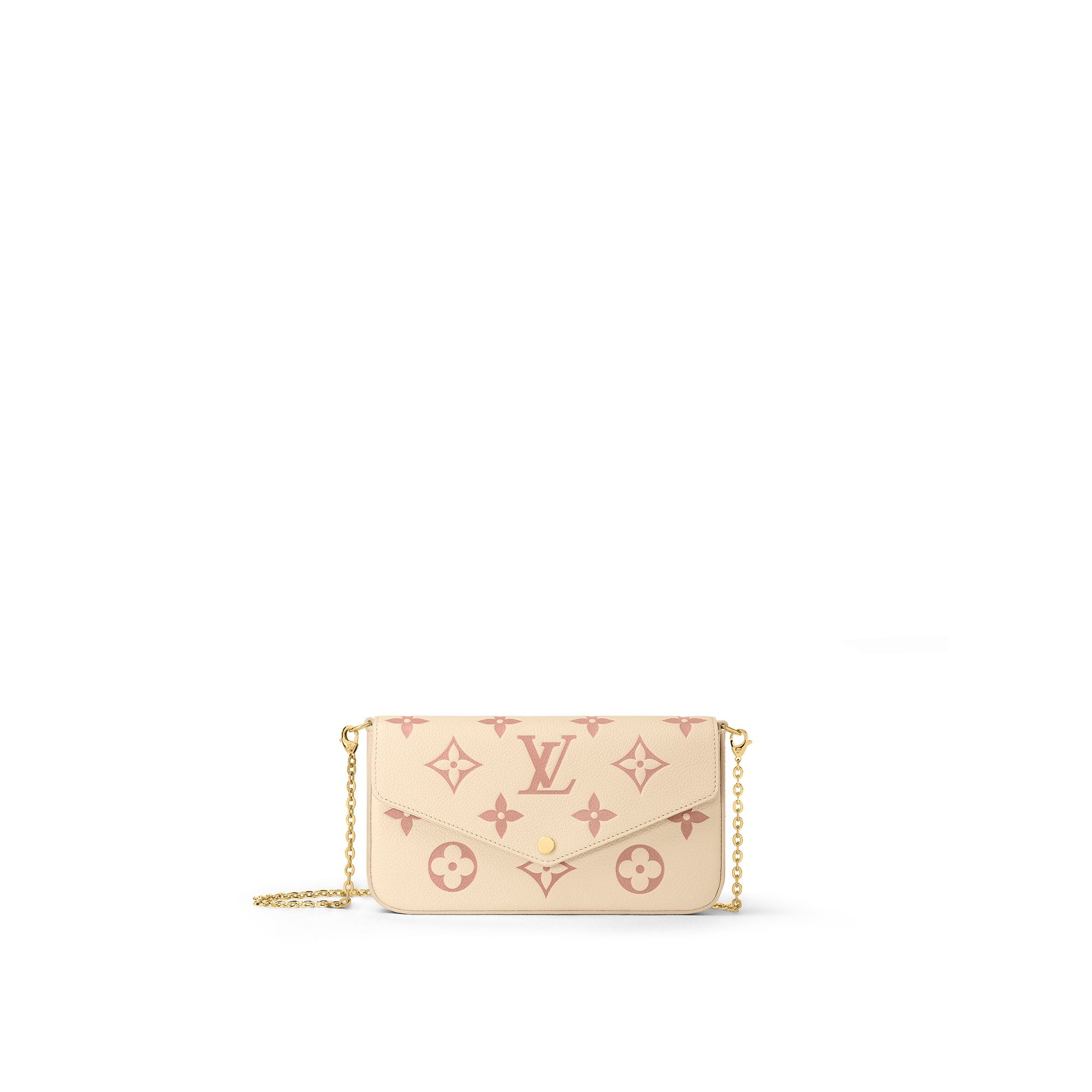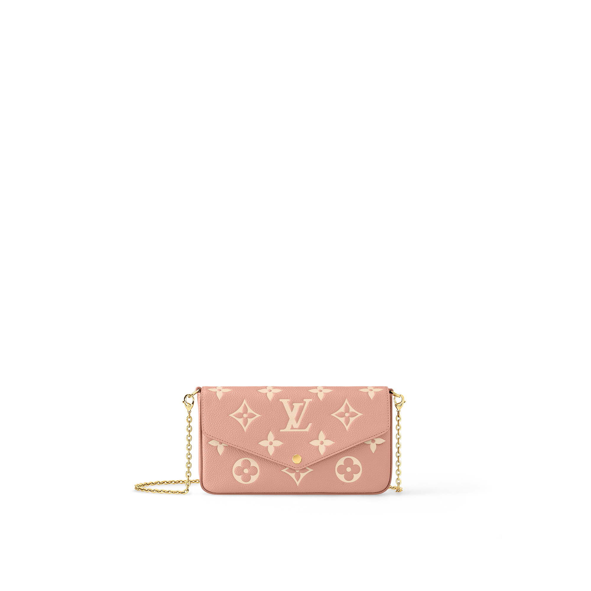 The Pochette Félicie is crafted from supple Monogram Empreinte leather, embossed with Louis Vuitton's iconic Monogram pattern. The bicolor palette brings added refinement to this elegant and versatile design, which features a removable chain, enabling it to be carried on the shoulder or as a clutch, as well as two removable pockets.
