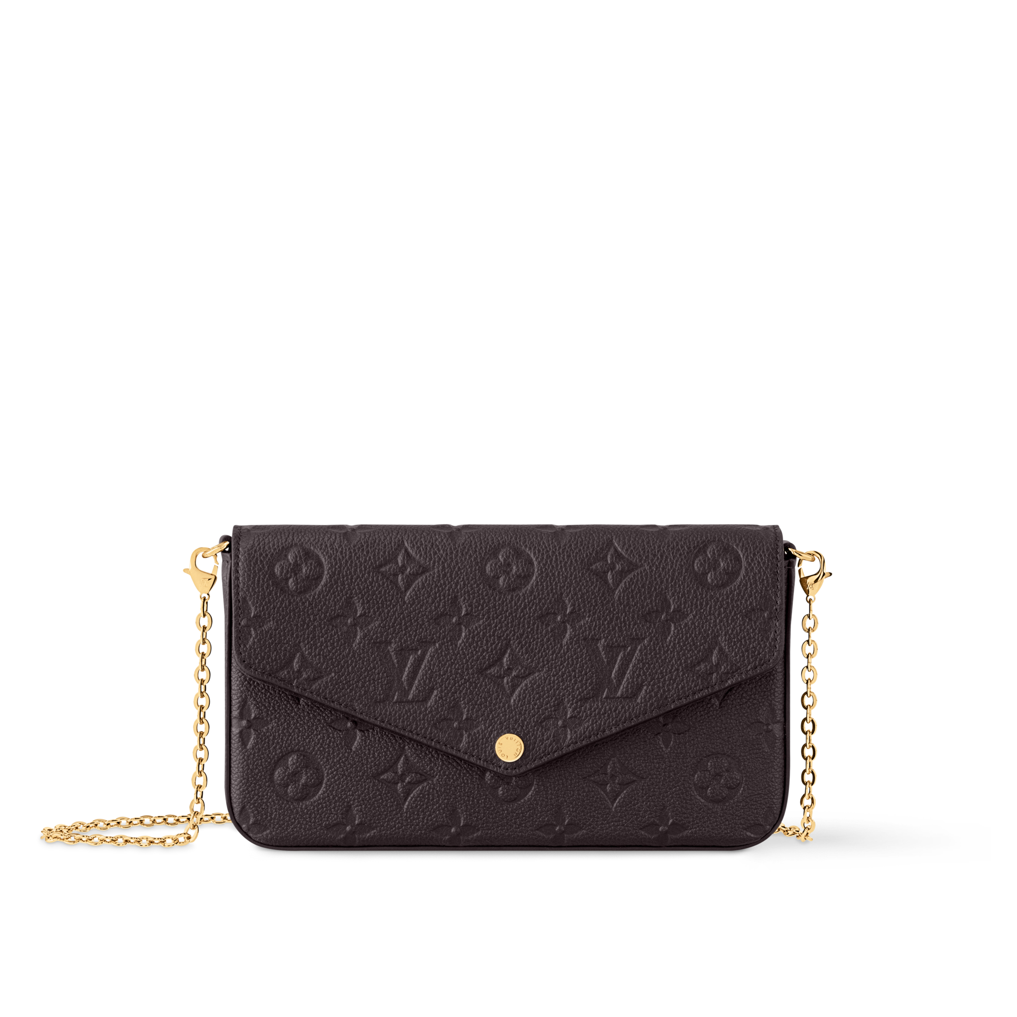 The Pochette Félicie is crafted from Monogram Empreinte leather, embossed with Louis Vuitton's signature Monogram pattern. Designed to adapt to modern lifestyles, this envelope-style pouch contains a spacious compartment with two removable pockets: one zipped, one with card slots. It can also be carried in different ways thanks to a removable chain.