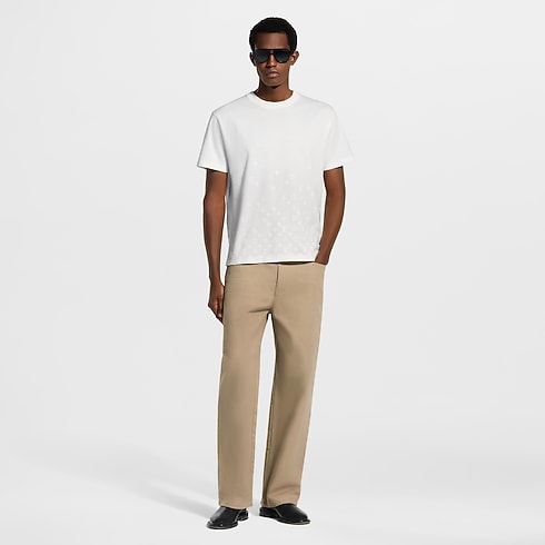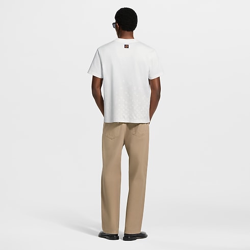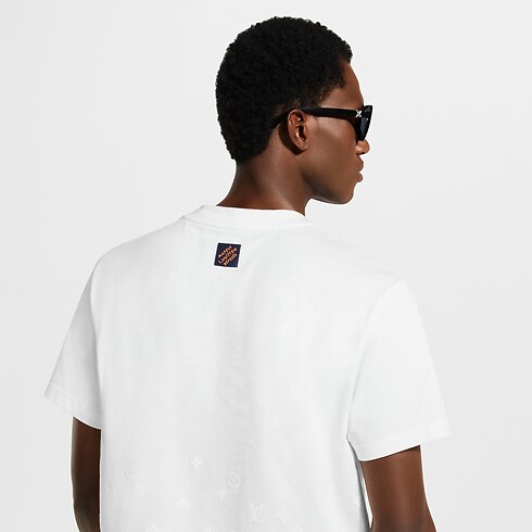 Crafted in a light organic cotton jersey, this classic T-shirt is elevated with a softly textured flock Monogram Gradient motif. It is executed in a discreet tone-on-tone treatment with a signature that rises and disperses from the hem. This elegant piece in a timeless milky white brings a subtle signature accent to casual and everyday looks.