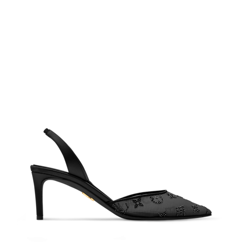 Mesh and rhinestones combine to elegant effect on the Gala slingback pump, which is part of the Louis Vuitton Bridal capsule. The translucent mesh reveals the foot, while the rhinestones adorn it with a shimmering Monogram pattern. A pointed toe and a slender, mid-height heel complete this design, which is both sophisticated and easy to wear.