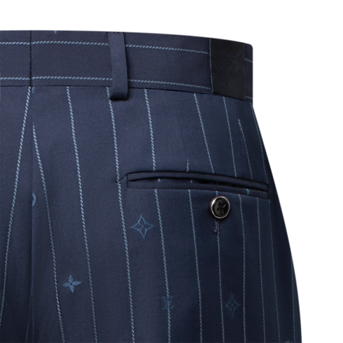 These navy blue cigarette pants play with the codes of tailoring by reinventing the classic pinstripe motif, which is reconfigured here as a tonal Monogram Pinstripes jacquard with Monogram elements dispersed amongst the stripes. Crafted from fine wool, these flattering pants make a sophisticated business suit paired with a matching jacket.