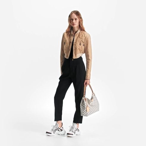 The Graceful PM hobo in fresh Damier Azur canvas is a lightweight, roomy bag to carry every day. Natural cowhide leather detailing and golden hardware add a refined touch. The body-friendly design combines with a supple, flat handle for stylish and comfortable over-the-shoulder wear. The magnetic closure and zipped inside pocket keep belongings secure.