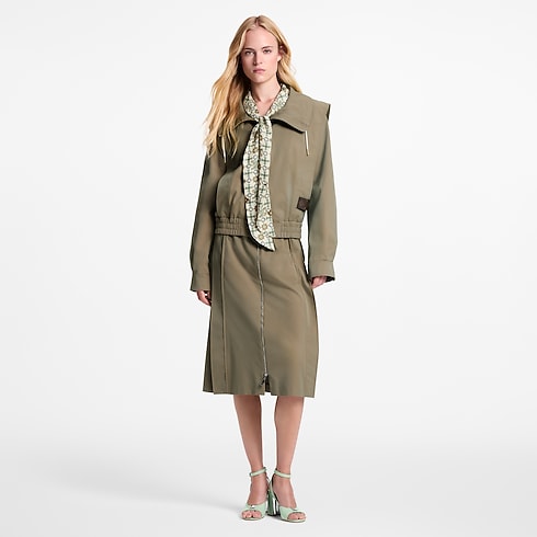 This zip-up jacket has a sporty, layered look in elegant cotton twill crafted with chunky hems framing the torso and shoulders, while a high neckline and ribbed waist keep out the cold. Signed with a Monogram canvas tab and a Monogram silk lining.