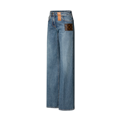 A signature spin on an enduring staple: These jeans flatter the figure in a high-waisted boot cut that elongates the silhouette, crafted from thick organic denim in a timeless shade for casual everyday styling. A jewel button adds a chic detail, while leather and Monogram patches complete the look with a contemporary House touch.