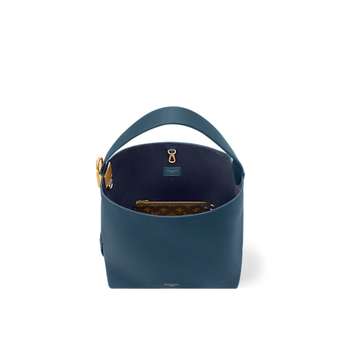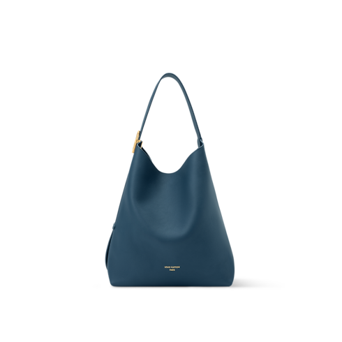 The Low Key collection presents this refined Prussian Blue edition of the Hobo MM, crafted from supple calf leather in a distinct bucket-style silhouette. This elegant design is embellished with aged gold-toned hardware that matches the Louis Vuitton lettering across the front. Inside, there is a removable zipped pouch patterned with the iconic Monogram, and there is enough space for daily essentials, including a notebook.
