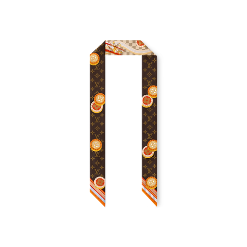 The playful design of the Jeu De Voyage BB bandeau was inspired by the pleasure of games. Printed on rich silk, it mixes backgammon elements like dice and chips with the classic Damier motif, recalling the House’s heritage. A refined Monogram pattern on the reverse side adds a discreet extra signature.