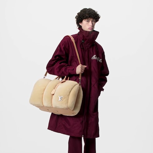 Inspired by the cuddly softness of teddy bears, the Puffy Shearling Keepall Bandoulière 50 is for those longing for childlike comfort in a bag with grown-up functionalities. Made from shearling, the bag features lateral bands, top handles, and a name tag in natural cowhide leather. It’s signed with LV initials in the lower corner.