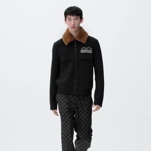 This cozy blouson is made from responsibly sourced merino wool. The compact punto Milano knit and removable shearling collar give an outerwear effect, which is underlined by the two flap pockets and the zip closure. Two embroidered Vuitton signatures in contrasting thread on the left chest add a distinctive finishing touch.