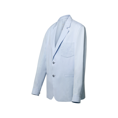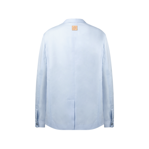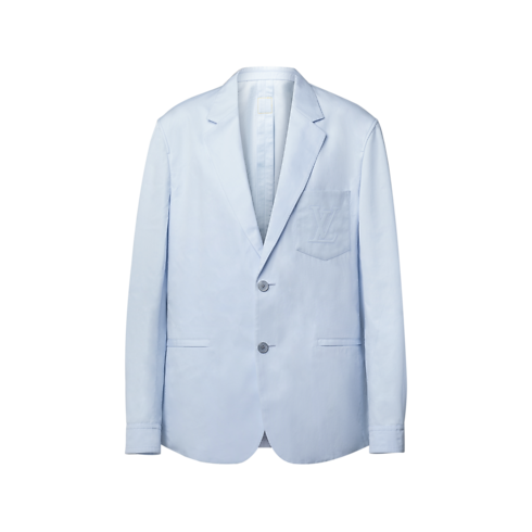 This pale blue jacket in a light cotton-silk blend blurs the codes between formal and casual, bringing easy elegance to spring looks. The softly structured, unlined silhouette combines a smart notch lapel with shirt-like cuffs, while the breast pocket is adorned with an embossed and topstitched LV. This piece can be styled with workwear items, such as cargo pants, for a fresh yet elevated look.