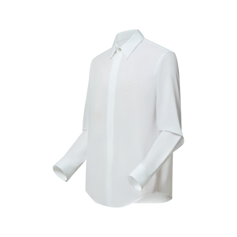 This long-sleeved cotton tailored shirt is especially suited for festive evening looks with its elegant concealed button placket. The streamlined silhouette sets off an embroidered LV Ribbon signature with a textured relief effect on the chest. This essential piece effortlessly completes tailored looks and timeless separates.