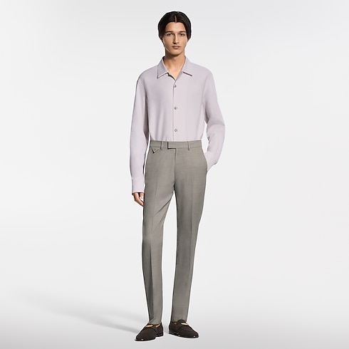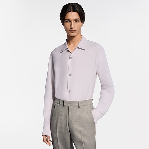 Crafted in organic cotton with an open collar for warmer summer weather, this long-sleeved shirt has a soft touch, bringing a relaxed mood to contemporary tailoring. The light fabric is adorned with a jacquard Micro Flower Damier motif with a subtle luster and mother-of-pearl effect buttons. This versatile piece can be layered with a Napolitana suit for an effortlessly elegant look.