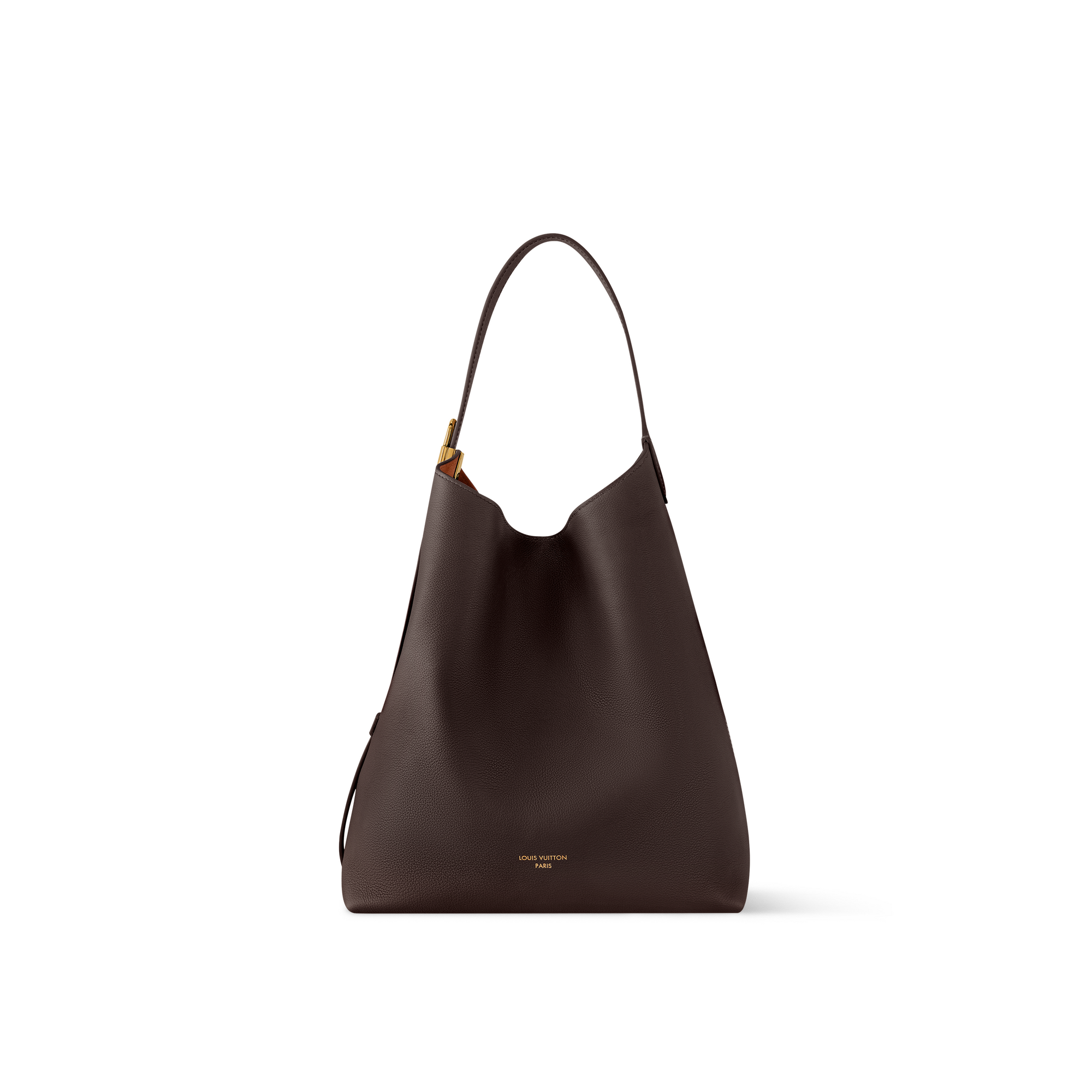 Updated for the season in refined soft suede, this edition of the Hobo MM combines a 70s bohemian aesthetic with sleek LV lines. It is elevated with chocolate leather trims and a signature padlock in an aged gold-toned finish. Functional and chic, the versatile design includes an interior pocket and also features a removable Monogram pouch to store smaller items on the go.