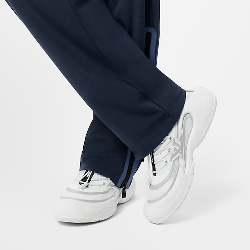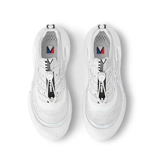 Part of the Louis Vuitton 37th America's Cup collection, the LV Barracuda sneaker is a technical model especially designed for professional sailors, which was developed in consultation with a former America's Cup skipper. The upper is crafted from a mix of high-performance, quickly drying and breathable materials, while the rubber outsole offers excellent grip, as well as shock-absorbent features on the toe and heel. This slip-on model with a quick lacing system is notable for its rich detailing, including Gaston-Louis Vuitton's personal V emblem in the style of a nautical flag. For a professional use, small holes can be added in the outsole to drain water.