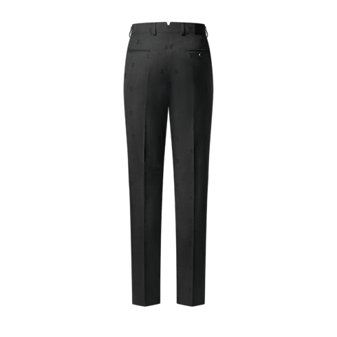 This dark gray pure wool suit is a sleek and timeless option for the office. A discreet jacquard LV Blason motif ennobles this piece all over, with the signature repeated on the lining. The sharp silhouette features a single-breasted Pont Neuf jacket and elegant cigarette-fit pants. Finishing touches include an LV-embroidered tab on the right hip of the pants and signature labels.