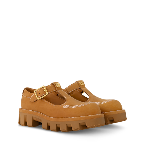 The LV Checker Mary Jane in grained nubuck leather is a fashion-forward style first seen at the Spring-Summer 2024 men's show. The upper is embellished with contrast stitching, engraved studs and the LV Initials signature on the tongue. This model has a chunky yet lightweight rubber outsole, which was inspired by workwear and features a Damier-pattern tread.