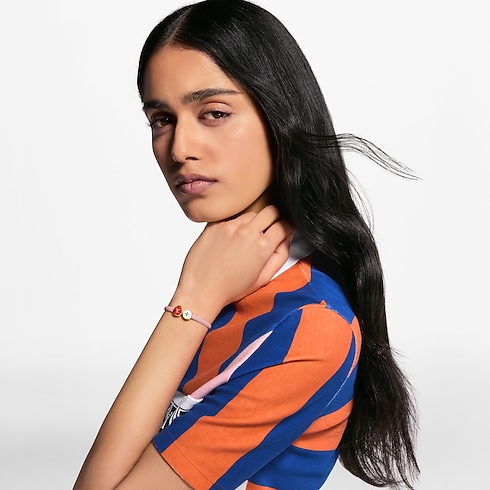 The casual-chic LV Confetti bracelet offers an eye-catching variation on the House’s beloved icons. Its slim leather strap features a colorful metal and enamel closure in the form of two confetti-like disks adorned with a Monogram Flower and the emblematic LV Initials. This fun, easy-to-wear bracelet adds a playful creative accent to any look.
